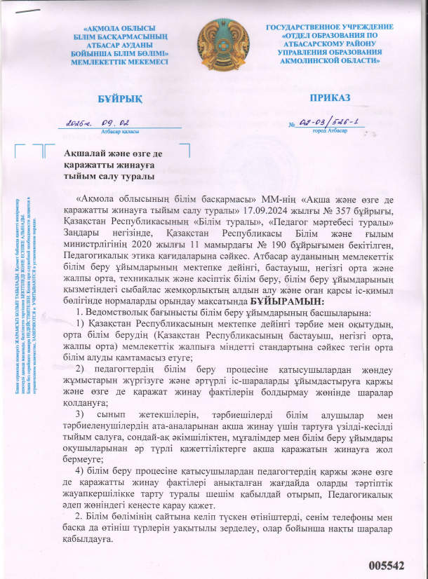 "Ақша жинауға тыйым салу туралы" бұйрық