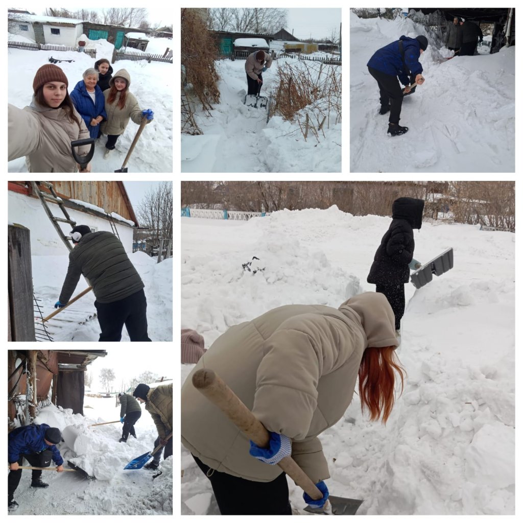 13 наурыз күні Ақан Құрманов ауылында мектеп волонтерлері зейнеткерлерге қар тазалауға көмектесті.