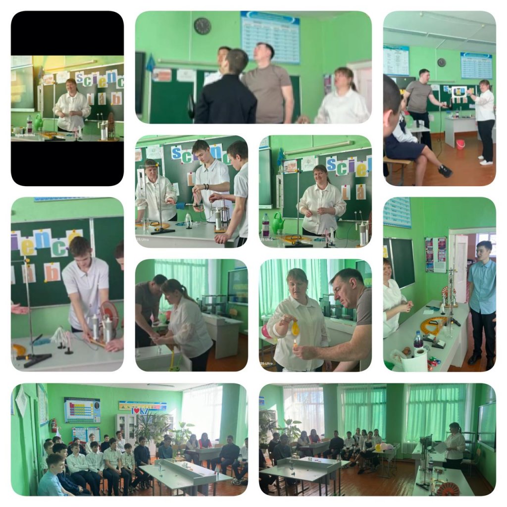 Оқушылар түрлі физикалық пен тәжірибелі көрсетілімдерге үлкен қызығушылықпен қатысты....