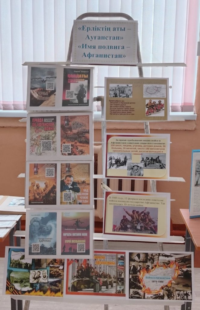 15 ақпан – кеңес әскерлерінің Ауғанстаннан шығарылған күні. Осы атаулы күнге орай Акан Курманова а. мектебінің фойесінде «Ерлік аты – Ауғанстан» атты көрме ұйымдастырылды.