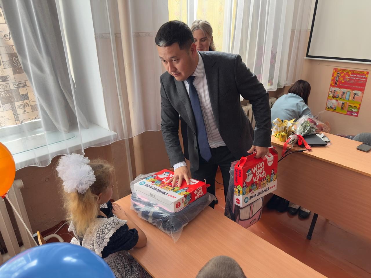 Бірінші сынып оқушыларына «Қазақстан – 2030» ЖШС-нің атынан мектепке қажетті құрал-жабдықтар салынған сөмкелер табысталды. Аталған серіктестіктің басшысы – Бегалинов М.З.