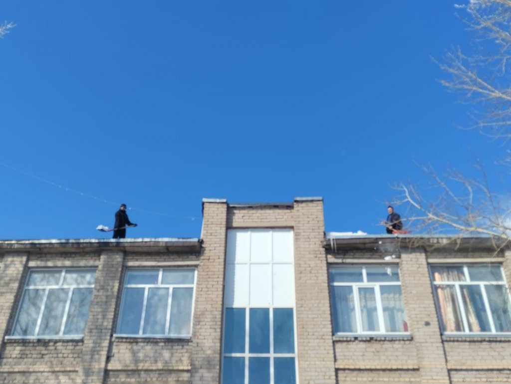 Қар тазалау жұмыстарына ерекше көңіл бөлінуде: мектеп қызметкерлері ұйымдасқан түрде аула аумағын, жолдарды, ғимараттың шатырын және оған іргелес жерлерді қардан тазалап, су басу қаупінің алдын алуда.
